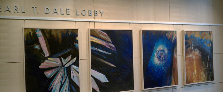 Science is the force that unites all the different floors of the LPSC. It’s also the inspiration for the art that hangs on each floor, tying the whole building together. It’s Oregon State Law that any public building that costs more than $100,000 must use one percent of the total budget for art. So in a multi-million-dollar building, that’s hundreds of thousands of dollars available to purchase art.