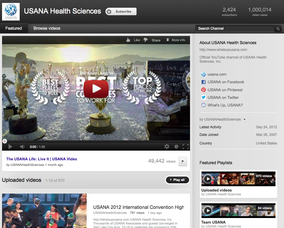 USANA’s YouTube Channel Hits One Million Views