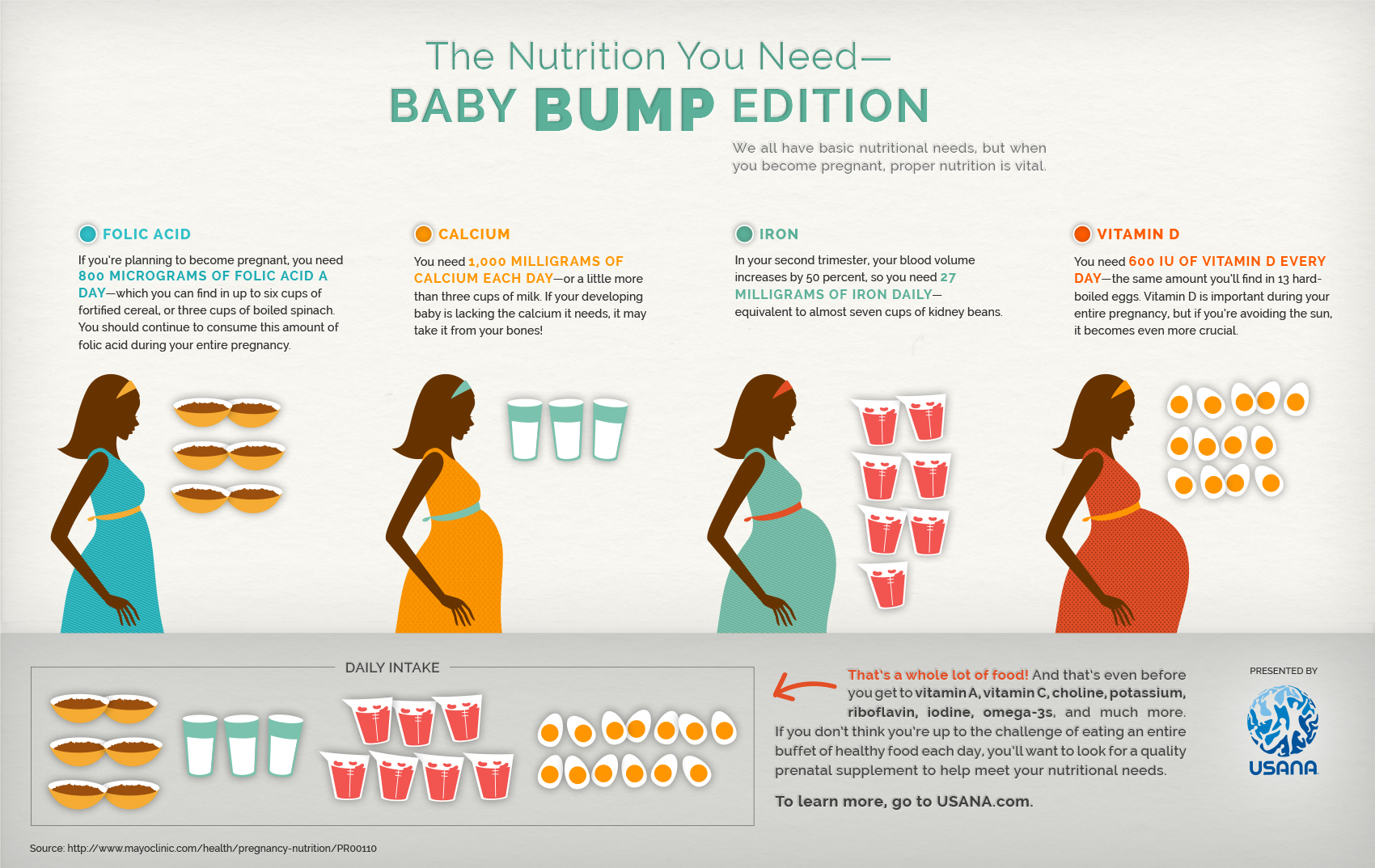 But sometimes it’s hard to know where to start. This infographic — crafted by USANA’s own Mikelle Williams — shows some of the basic nutrients that will help get your baby off to the right start.