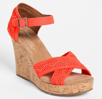 Now that you’re tan, blushed, and your lips are shiny and plump, go ahead and slip on a pair of summer’s hottest shoe — the wedge. I love Tom’s coral version available at Nordstrom. They are super cute and the perfect height. Pair them with a flowy sundress and you can go from day to night.