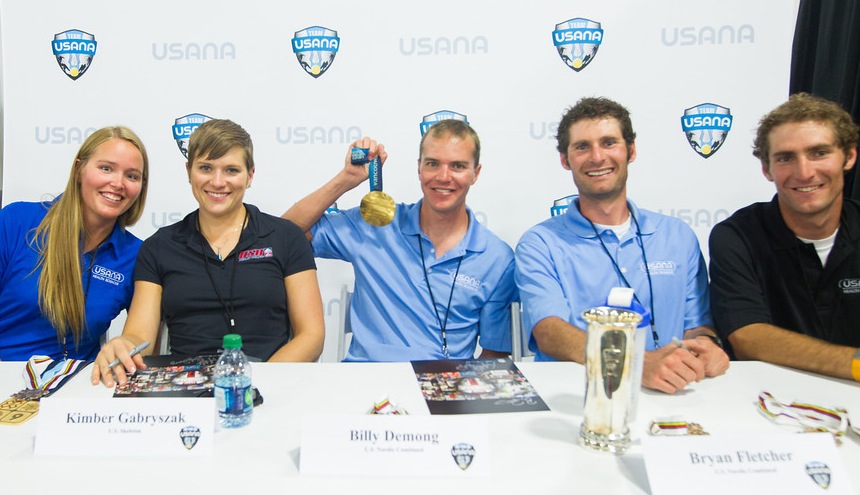 Grete, left, Kimber Gabryszak, Billy Demong, Bryan Fletcher and Taylor Fletcher sign autographs for USANA fans!