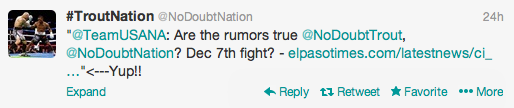 Austin “No Doubt” Trout’s camp confirmed that Austin will be stepping back in the ring December 7 at the Barclays Center in Brooklyn, New York. He is rumored to face Cuban south-paw boxer Erislandy Lara for a chance to win back the WBA Interim title.