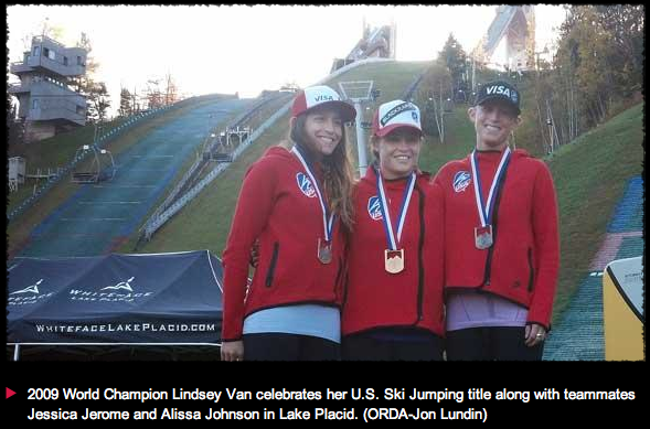 Veteran ski jumper Lindsey Van secured her 16th U.S. title at the U.S. Ski Jumping Championships on the K90 Olympic hill in Lake Placid, with the two longest jumps of the day (92.0 and 96.5 meters). Teammates Jessica Jerome, a ten-time national champion, took second while Alissa Johnson secured third.