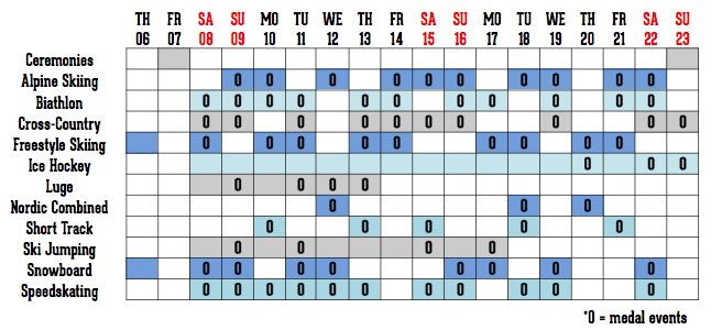 2. Official coverage begins on NBC on Feb. 6! For local listings (US only), check out this spiffy schedule and set your DVRs to record the events! For days Team USANA athletes have the opportunity to medal, check out this magnificent calendar I created for you below.