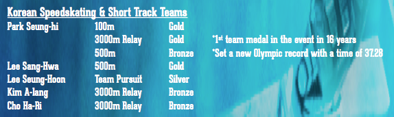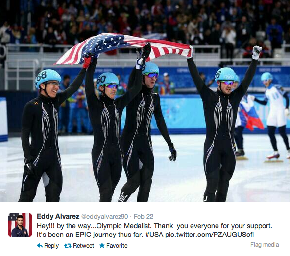 - U.S. Speedskating short track athletes J.R. Celski, Eddy Alvarez, Chris Creveling and Jordan Malone took home the team’s only medal of the Games, capturing silver in the 5000m relay.