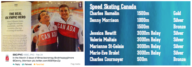 - Speed Skating Canada captured 1 gold, 2 silver and 2 bronze medals during the Games, two of which were earned by long tracker Denny Morrison. Morrison captured silver in the 1000m after teammate Gilmore Junio generously gave up his spot in the race.