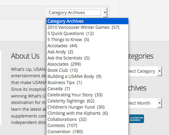 You know I have loved What’s Up USANA since it first began. I love sharing these fun and informative articles. I never knew about the category archives search function, though. That is really going to help me share relevant articles within specific topics! You make sharing USANA so easy!
