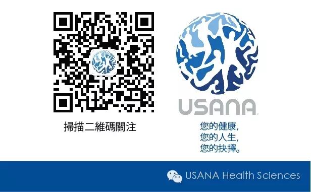 USANA Health Sciences公司(NYSE: USNA) 创立于1992年,是一家总部位于美国盐湖城的FDA(美国食品药品管理局)注册厂家,公司专注于生产优质营养补充品、个人护理产品和体能产品。访问USANA官方网站或官方博客,以及扫描以下二维码关注USANA官方微信,了解更多关于USANA的信息。