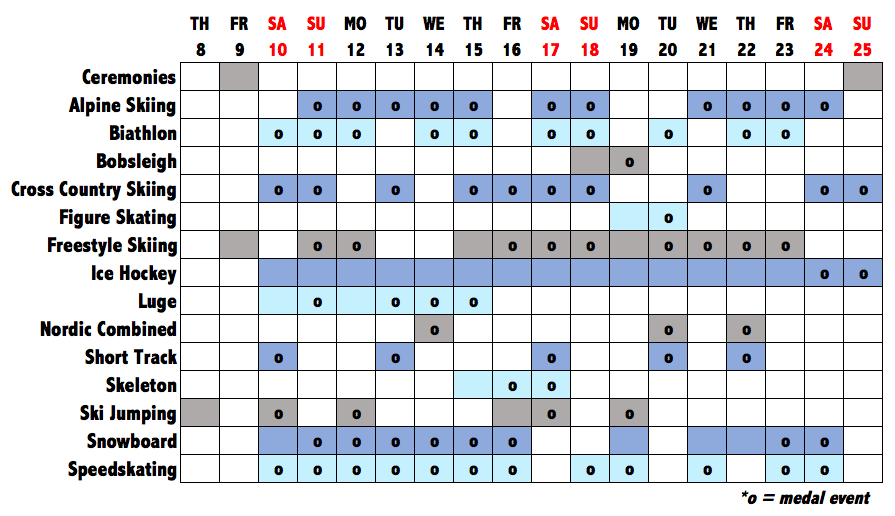 5.) Unlike Russia’s warm weather temps, South Korea is expected to have the coldest temps during the 18-day event since 1994. This is due to the venues higher latitude locations and in theory should provide great competition conditions.
