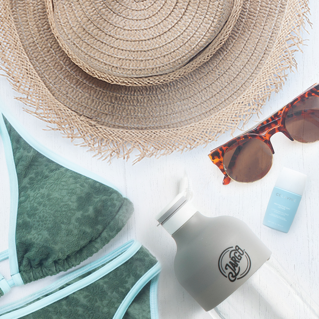 Drinking plenty of water is easier than you think. Pack plenty of H2O to take to with you on summer activities. Throw a few water bottles in your beach bag or pack a small cooler the next time you spend the afternoon soaking in sun rays. By staying hydrated, you’ll have more energy to enjoy the day—and look good doing it.