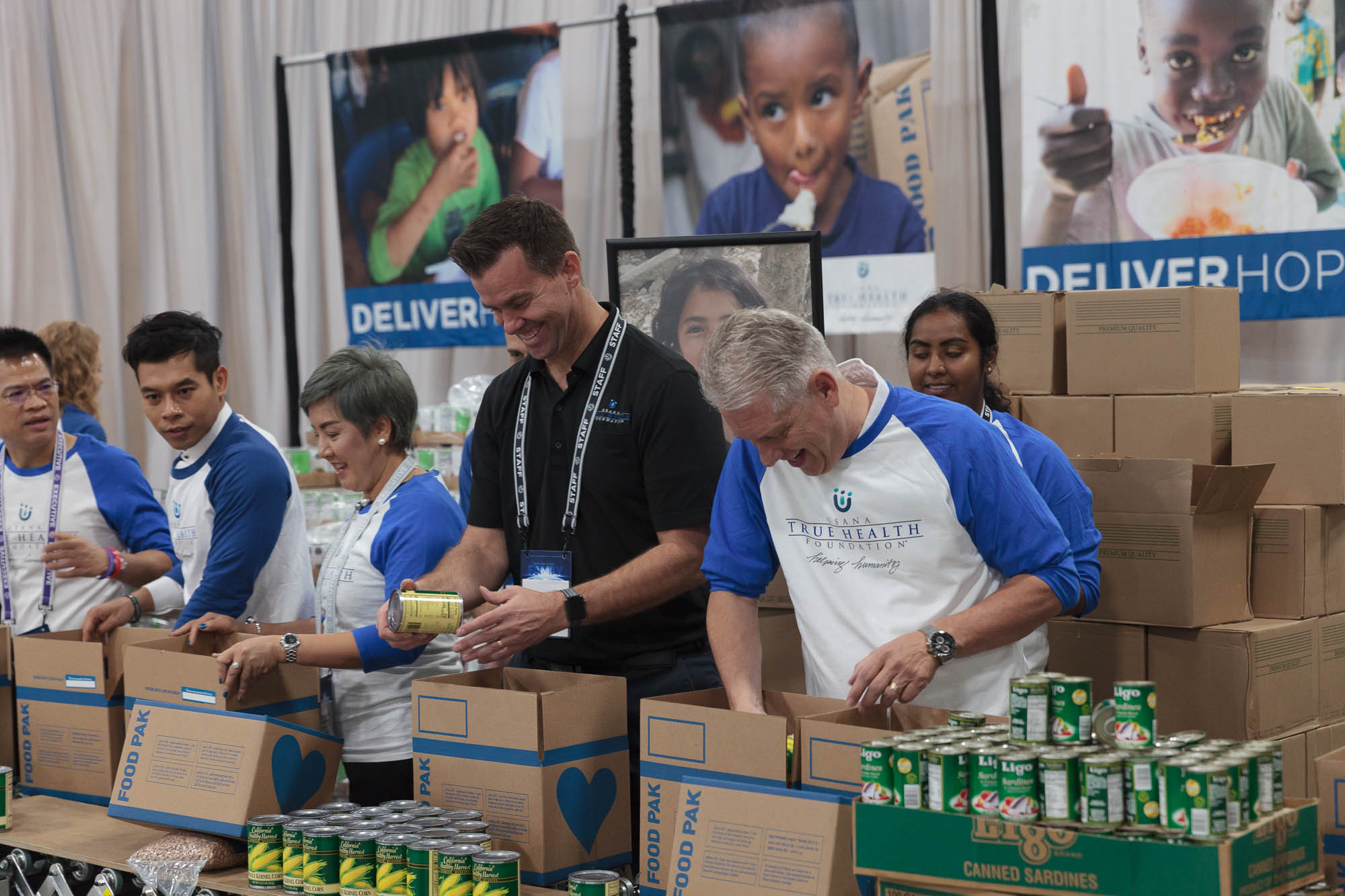 Long tables were loaded with canned and dry goods, puddings, oatmeal, and countless other necessary items, waiting to be organized into convenient nylon bags. The call went out to the entire company. The True Health Foundation (THF) needed volunteers to pack food for families in need.