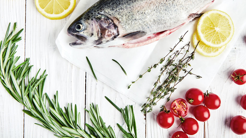One-Pan Lemon and Herb Roasted Rainbow Trout with Broccoli and Tomato