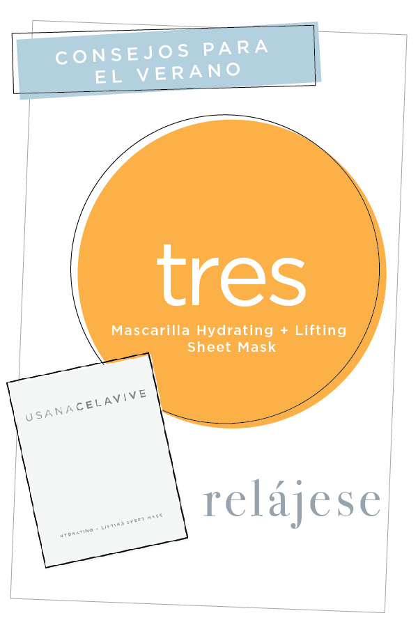 Consejo 3: El uso de mascarillas en lámina es una nueva tendencia como parte de los cuidados básicos de la piel durante el verano.  Mientras se relaja a la orilla de la piscina, mientras lee un buen libro, o mientras descansa cerca del aire acondicionado, dele a su piel amor y cuidados.