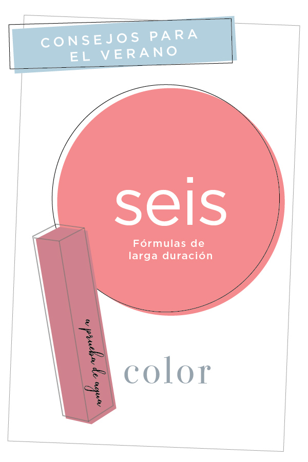 Consejo 6: Mantenga el glamour cuando esté en la piscina, cuando haga surfing o practique senderismo usando una máscara de pestañas y un delineador de ojos a prueba de agua.  Hay fórmulas de larga duración y muchos colores para elegir.
